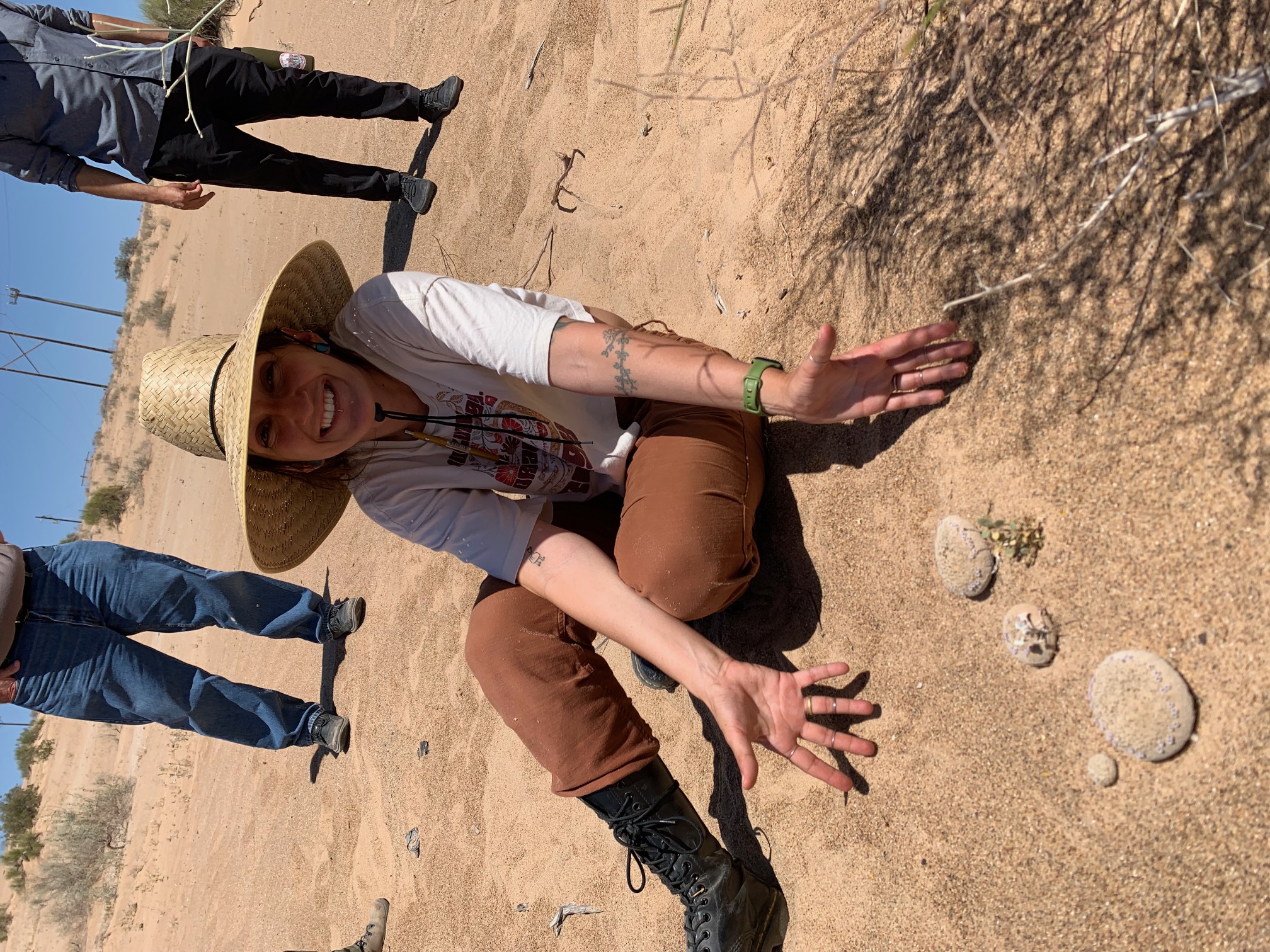 Happy Miranda posing with desert plants